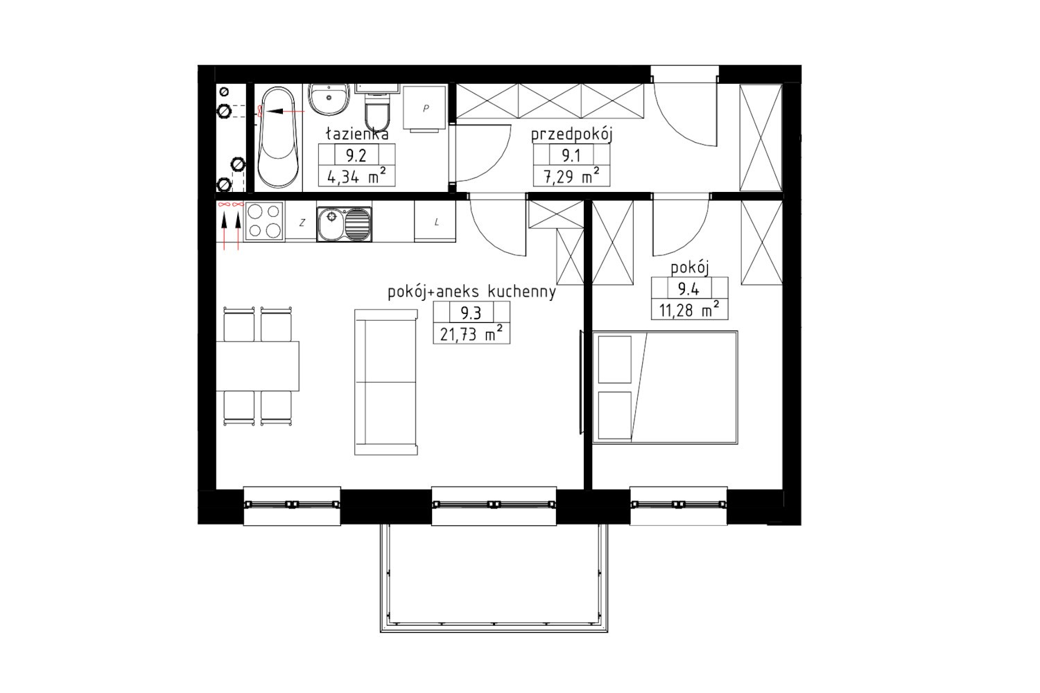 Mieszkanie 2- pokojowe numer 19 usytuowane na parterze. Powierzchnia użytkowa to 44,63 m 2. Składa się z: przedpokoju, pokoju dziennego z aneksem, sypialni, łazienki i balkonu. Mieszkanie w stanie deweloperskim do własnej aranżacji. Mieszkanie posiada ogródek o powierzchni ok. 39 m2, co zapewnia dodatkową przestrzeń do relaksu i odpoczynku na świeżym powietrzu. Do dyspozycji mieszkańców plac zabaw, na terenie nieruchomości miejsca parkingowe, bliskość punktów handlowych. Ogrzewanie gazowe poprzez własną kotłownię w budynku. Do każdego mieszkania przynależy komórka lokatorska.