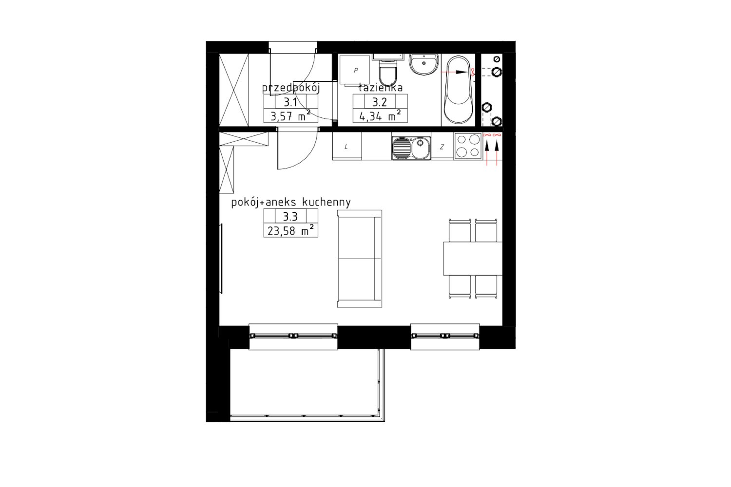 Mieszkanie 1- pokojowe numer 3 usytuowane na parterze. Powierzchnia użytkowa to 31,48 m 2.. Składa się z: pokoju dziennego z aneksem, łazienki i balkonu. Mieszkanie w stanie deweloperskim do własnej aranżacji. Mieszkanie posiada ogródek o powierzchni ok. 59,7 m2, co zapewnia dodatkową przestrzeń do relaksu i odpoczynku na świeżym powietrzu. Do dyspozycji mieszkańców plac zabaw, na terenie nieruchomości miejsca parkingowe, bliskość punktów handlowych. Ogrzewanie gazowe poprzez własną kotłownię w budynku. Do każdego mieszkania przynależy komórka lokatorska.