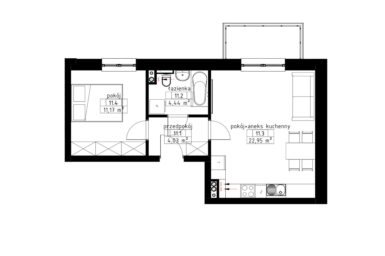 Mieszkanie 2- pokojowe numer 6 usytuowane na pierwszym piętrze. Powierzchnia użytkowa to 42,54 m 2. Składa się z: przedpokoju, pokoju dziennego z aneksem, sypialni, łazienki i balkonu. Mieszkanie w stanie deweloperskim do własnej aranżacji. Każde mieszkanie posiada balkon, parterowe- ogródek, co zapewnia dodatkową przestrzeń do relaksu i odpoczynku na świeżym powietrzu. Mieszkanie w stanie deweloperskim do własnej aranżacji. Do dyspozycji mieszkańców plac zabaw, na terenie nieruchomości miejsca parkingowe, bliskość punktów handlowych. Ogrzewanie gazowe poprzez własną kotłownię w budynku. Do każdego mieszkania przynależy komórka lokatorska w cenie 10 000 zł.