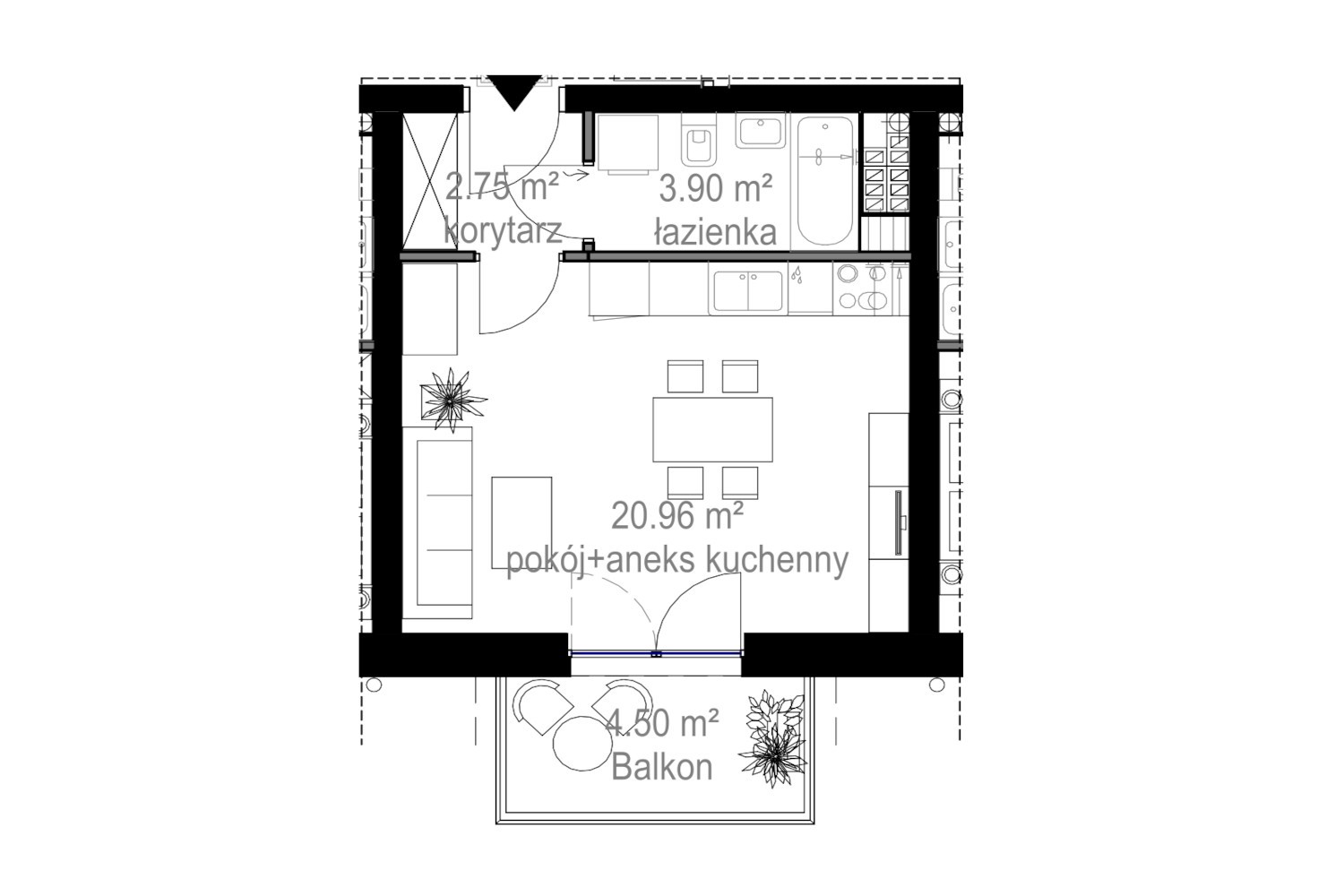 Komfortowe 1 pokojowe mieszkanie numer 13 usytuowane na III piętrze segmentu A. Powierzchnia użytkowa to 27,61 m kw. Składa się z: pokoju dziennego z aneksem, łazienki i balkonu. Mieszkanie w stanie deweloperskim do własnej aranżacji. Do dyspozycji mieszkańców komfortowa cichobieżna winda, zewnętrzny ogrodzony plac zabaw, parking naziemny. Ogrzewanie gazowe poprzez własną kotłownie.Możliwość zakupu indywidualnego garażu.