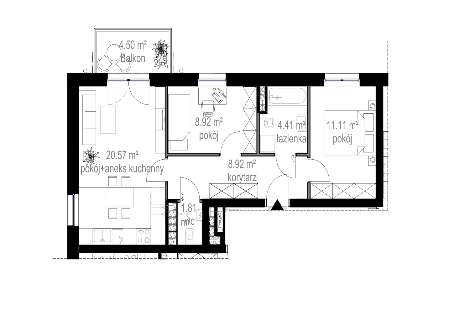 Komfortowe 3 pokojowe mieszkanie numer 15 usytuowane na III piętrze segmentu A. Powierzchna użytkowa to 55,74 m kw. Składa się z: przedpokoju, pokoju dziennego z aneksem, dwóch sypialni i łazienki i balkonu. Mieszkanie w stanie deweloperskim do własnej aranżacji. Do dyspozycji mieszkańców komfortowa cichobieżna winda, zewnętrzny ogrodzony plac zabaw, parking naziemny. Ogrzewanie gazowe poprzez własną kotłownie. Do mieszkania przynależy komórka lokatorska w cenie mieszkania. Możliwość zakupu indywidualnego garażu.