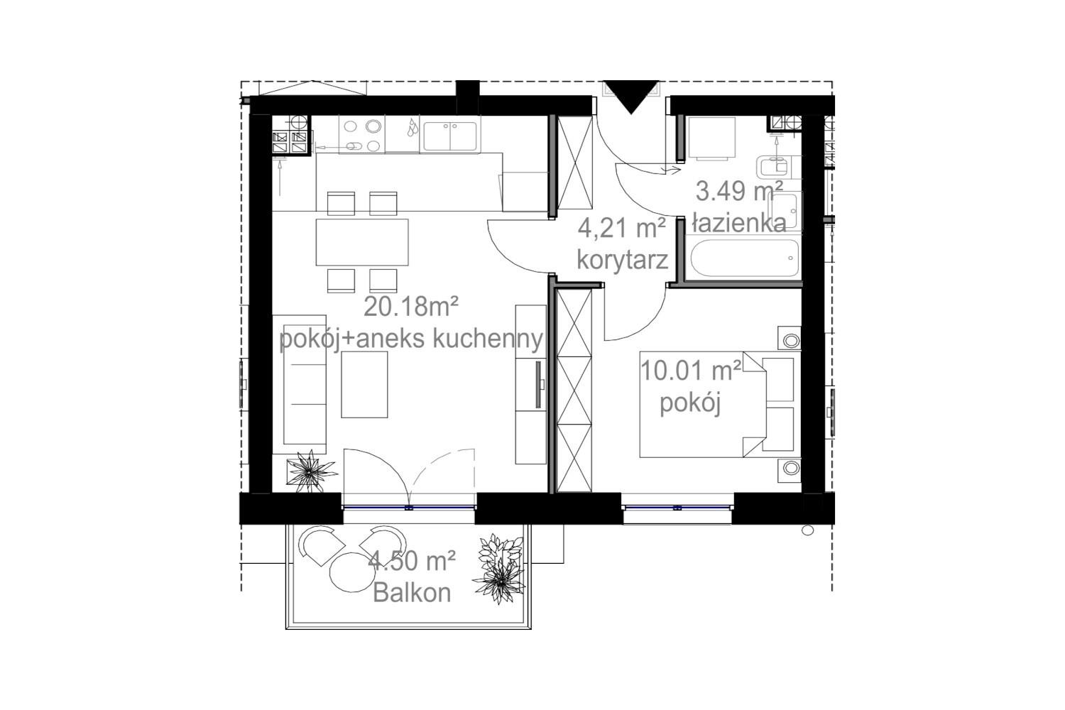 Komfortowe 2 pokojowe mieszkanie numer 24 usytuowane na I piętrze segmentu A. Powierzchna użytkowa to 37,89m kw. Składa się z: przedpokoju, pokoju dziennego z aneksem, sypialni, łazienki i balkonu. Mieszkanie w stanie deweloperskim do własnej aranżacji. Do dyspozycji mieszkańców komfortowa cichobieżna winda, zewnętrzny ogrodzony plac zabaw, parking naziemny. Ogrzewanie gazowe poprzez własną kotłownie. Do mieszkania przynależy komórka lokatorska w cenie mieszkania. Możliwość zakupu indywidualnego garażu.