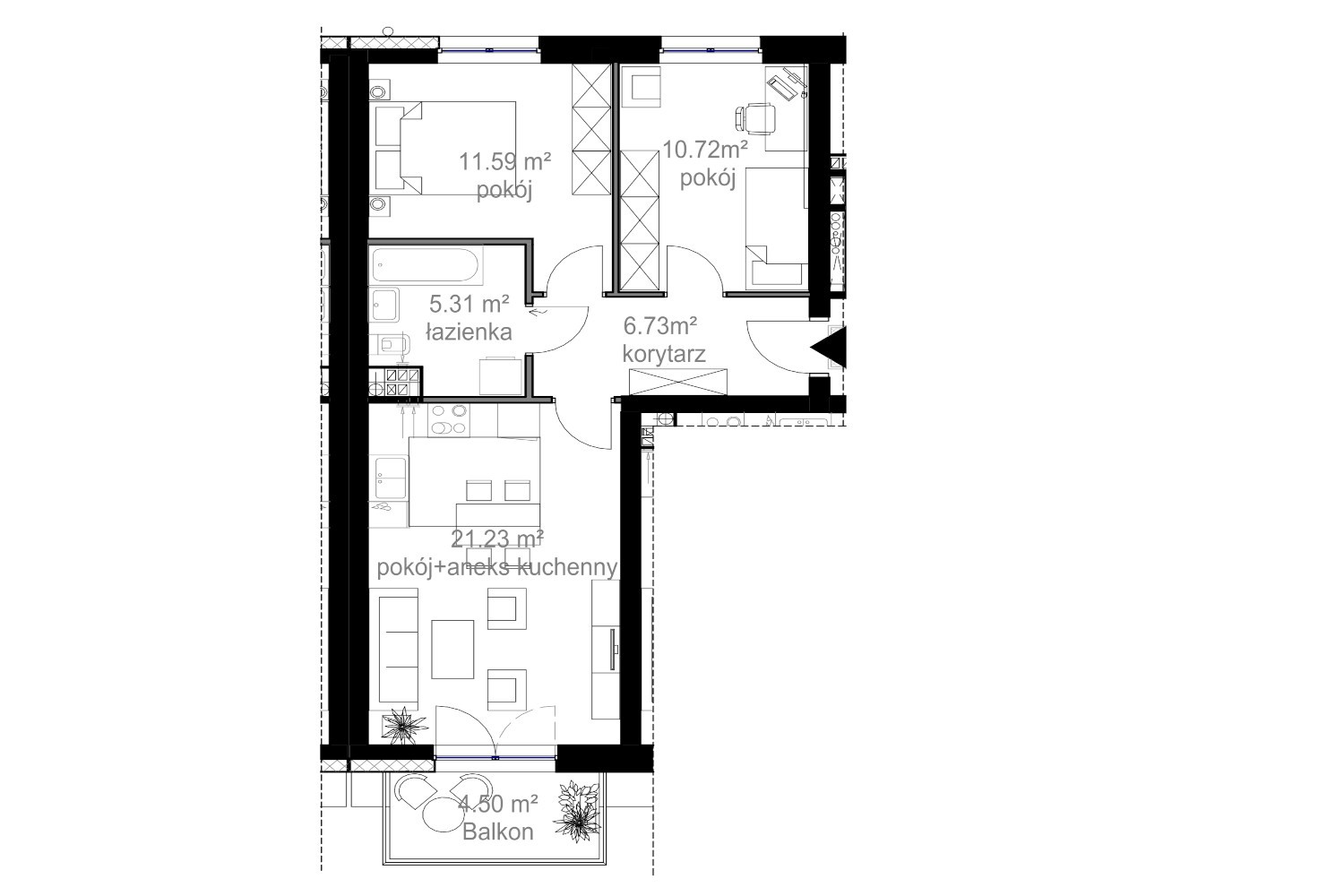 Komfortowe 3 pokojowe mieszkanie numer 25 usytuowane na I piętrze segmentu A. Powierzchna użytkowa to 55,50 m kw. Składa się z: przedpokoju, pokoju dziennego z aneksem, dwóch sypialni i łazienki i balkonu. Mieszkanie w stanie deweloperskim do własnej aranżacji. Do dyspozycji mieszkańców komfortowa cichobieżna winda, zewnętrzny ogrodzony plac zabaw, parking naziemny. Ogrzewanie gazowe poprzez własną kotłownie. Do mieszkania przynależy komórka lokatorska w cenie mieszkania. Możliwość zakupu indywidualnego garażu.