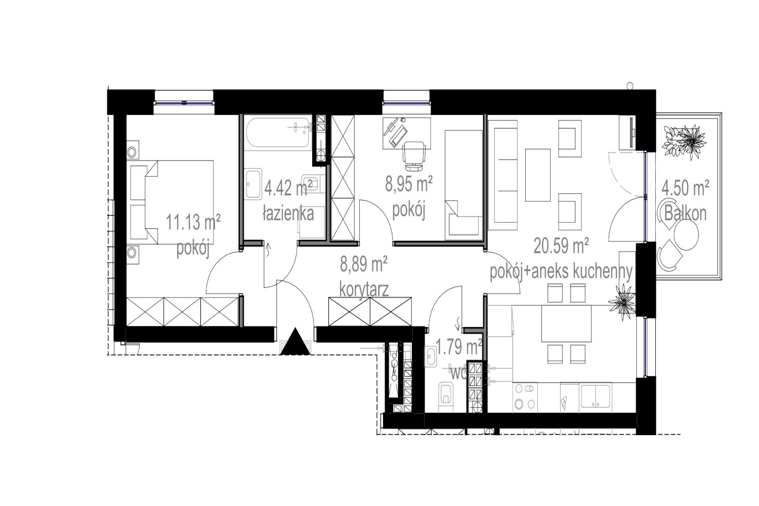 Komfortowe 3 pokojowe mieszkanie numer 26 usytuowane na II piętrze segmentu A. Powierzchna użytkowa to 55,76 m kw. Składa się z: przedpokoju, pokoju dziennego z aneksem, dwóch sypialni i łazienki i balkonu. Mieszkanie w stanie deweloperskim do własnej aranżacji. Do dyspozycji mieszkańców komfortowa cichobieżna winda, zewnętrzny ogrodzony plac zabaw, parking naziemny. Ogrzewanie gazowe poprzez własną kotłownie. Do mieszkania przynależy komórka lokatorska w cenie mieszkania. Możliwość zakupu indywidualnego garażu.