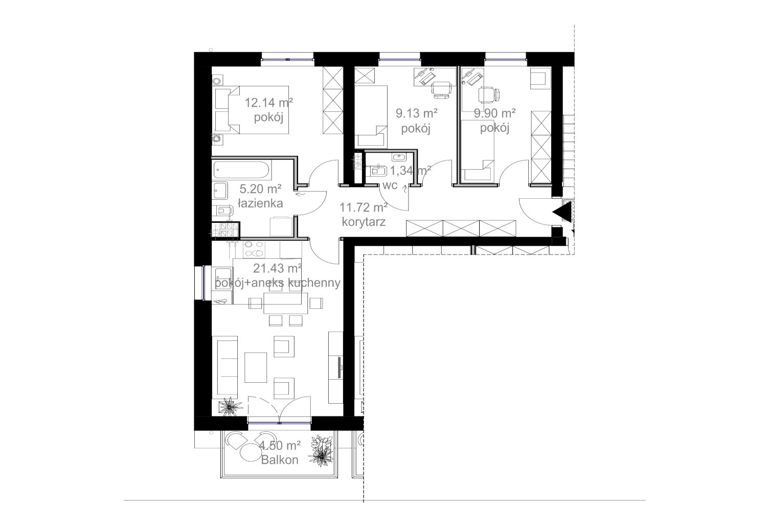 Komfortowe 4 pokojowe mieszkanie numer 44 usytuowane na I piętrze segmentu B. Powierzchnia użytkowa to 70,86 m kw. Składa się z: przedpokoju, pokoju dziennego z aneksem, dwóch sypialni i łazienki i balkonu. Mieszkanie w stanie deweloperskim do własnej aranżacji. Do dyspozycji mieszkańców komfortowa cichobieżna winda, zewnętrzny ogrodzony plac zabaw, parking naziemny. Ogrzewanie gazowe poprzez własną kotłownie. Do mieszkania przynależy komórka lokatorska w cenie mieszkania. Możliwość zakupu indywidualnego garażu.