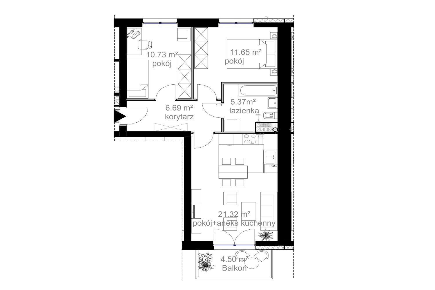 Komfortowe 3 pokojowe mieszkanie numer 45 usytuowane na II piętrze segmentu B. Powierzchnia użytkowa to 55,76 m kw. Składa się z: przedpokoju, pokoju dziennego z aneksem, dwóch sypialni i łazienki i balkonu. Mieszkanie w stanie deweloperskim do własnej aranżacji. Do dyspozycji mieszkańców komfortowa cichobieżna winda, zewnętrzny ogrodzony plac zabaw, parking naziemny. Ogrzewanie gazowe poprzez własną kotłownie. Do mieszkania przynależy komórka lokatorska w cenie mieszkania. Możliwość zakupu indywidualnego garażu.