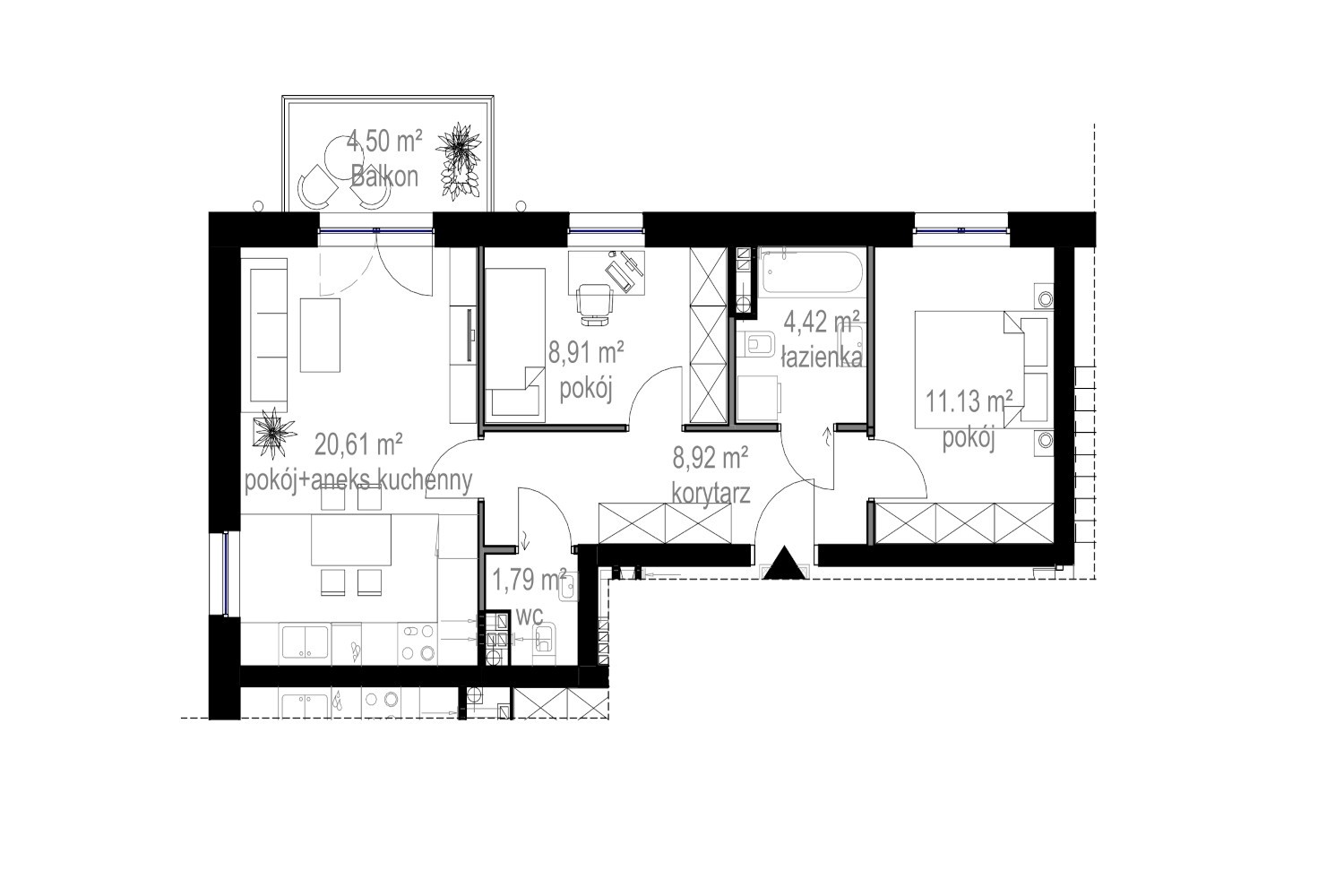 Komfortowe 3 pokojowe mieszkanie numer 5 usytuowane na I piętrze segmentu A. Powierzchna użytkowa to 55,78 m kw. Składa się z: przedpokoju, pokoju dziennego z aneksem, dwóch sypialni i łazienki i balkonu. Mieszkanie w stanie deweloperskim do własnej aranżacji. Do dyspozycji mieszkańców komfortowa cichobieżna winda, zewnętrzny ogrodzony plac zabaw, parking naziemny. Ogrzewanie gazowe poprzez własną kotłownie. Do mieszkania przynależy komórka lokatorska w cenie mieszkania. Możliwość zakupu indywidualnego garażu.