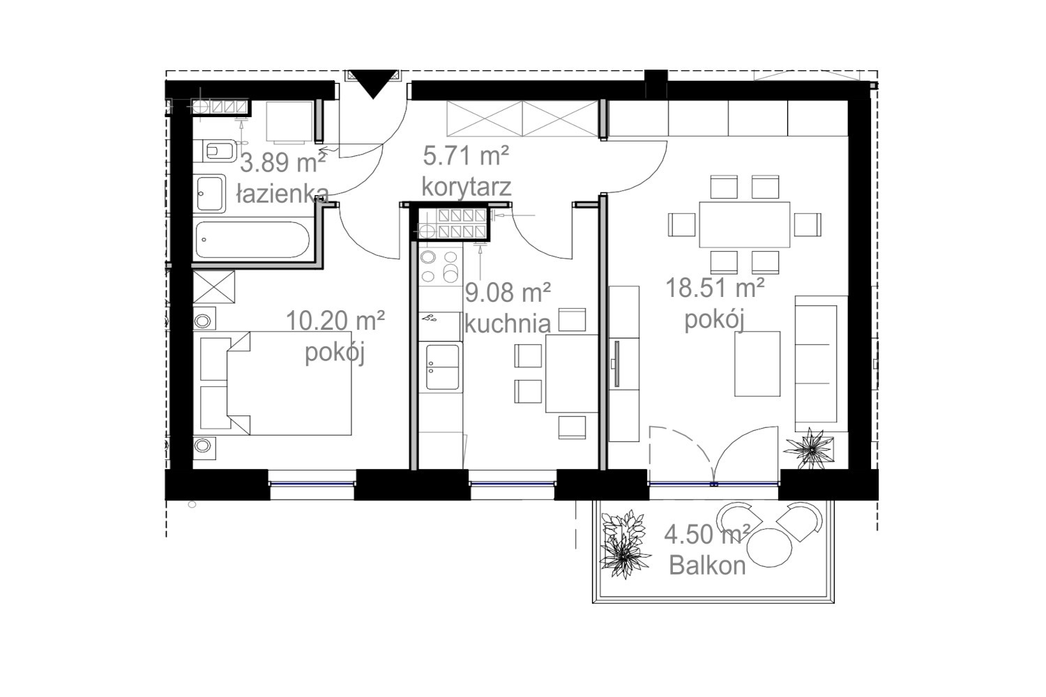 Komfortowe 2 pokojowe mieszkanie numer 50 usytuowane na III piętrze segmentu B. Powierzchnia użytkowa to 47,39 m kw. Składa się z: przedpokoju, pokoju dziennego, kuchni, sypialni, łazienki i balkonu. Mieszkanie w stanie deweloperskim do własnej aranżacji. Do dyspozycji mieszkańców komfortowa cichobieżna winda, zewnętrzny ogrodzony plac zabaw, parking naziemny. Ogrzewanie gazowe poprzez własną kotłownie. Do mieszkania przynależy komórka lokatorska w cenie mieszkania. Możliwość zakupu indywidualnego garażu.