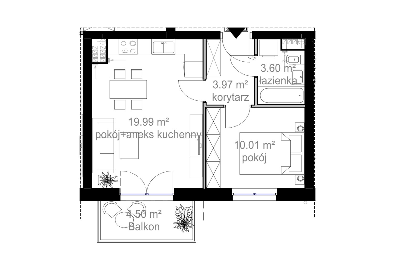 Komfortowe 2 pokojowe mieszkanie numer 71 usytuowane na III piętrze segmentu B. Powierzchnia użytkowa to 37,57 kw. Składa się z: przedpokoju, pokoju dziennego z aneksem, sypialni, łazienki i balkonu. Mieszkanie w stanie deweloperskim do własnej aranżacji. Do dyspozycji mieszkańców komfortowa cichobieżna winda, zewnętrzny ogrodzony plac zabaw, parking naziemny. Ogrzewanie gazowe poprzez własną kotłownie. Do mieszkania przynależy komórka lokatorska w cenie mieszkania. Możliwość zakupu indywidualnego garażu.