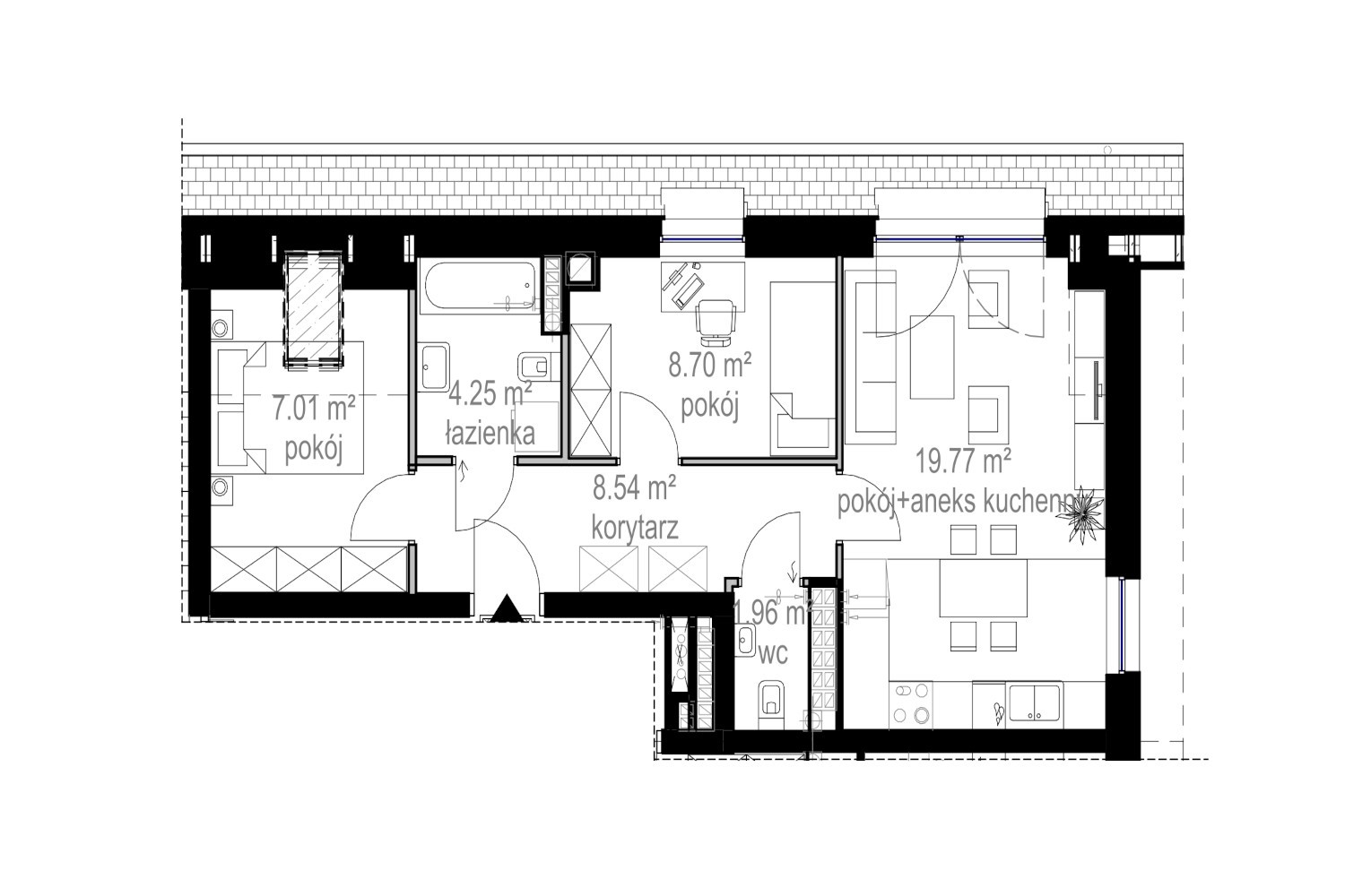 Komfortowe 3 pokojowe mieszkanie numer 73 usytuowane na IV piętrze segmentu B. Powierzchna użytkowa to 50,88 m kw. Składa się z: przedpokoju, pokoju dziennego z aneksem, dwóch sypialni i łazienki i balkonu. Mieszkanie w stanie deweloperskim do własnej aranżacji. Do dyspozycji mieszkańców komfortowa cichobieżna winda, zewnętrzny ogrodzony plac zabaw, parking naziemny. Ogrzewanie gazowe poprzez własną kotłownie. Do mieszkania przynależy komórka lokatorska w cenie mieszkania. Możliwość zakupu indywidualnego garażu.