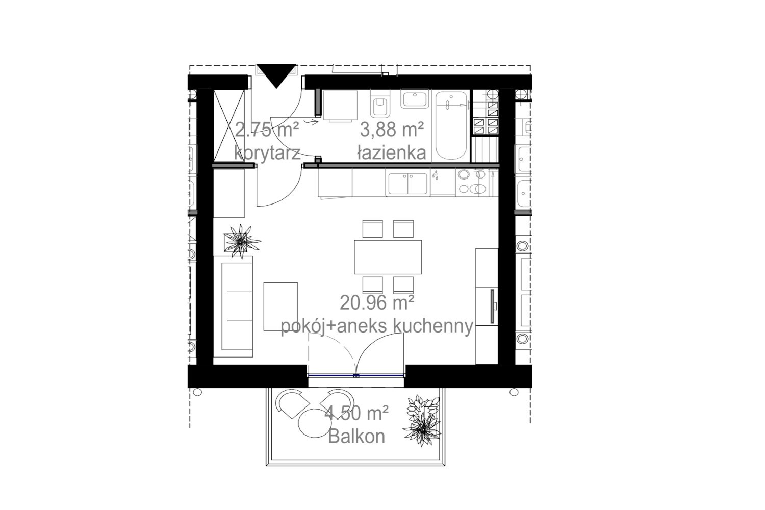 Komfortowe 1 pokojowe mieszkanie numer 8 usytuowane na II piętrze segmentu A. Powierzchna użytkowa to 27,59 m kw. Składa się z: pokoju dziennego z aneksem, łazienki i balkonu. Mieszkanie w stanie deweloperskim do własnej aranżacji. Do dyspozycji mieszkańców komfortowa cichobieżna winda, zewnętrzny ogrodzony plac zabaw, parking naziemny. Ogrzewanie gazowe poprzez własną kotłownie. Możliwość zakupu indywidualnego garażu.